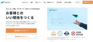 Tayoriは、フォーム・FAQ・チャットなど複数の機能を統合した、顧客対応プラットフォーム型のツールです。採用フォームの用途では、エントリーフォームの作成に加えて、応募ステータス管理や問い合わせ対応の一元化にも活用できます。